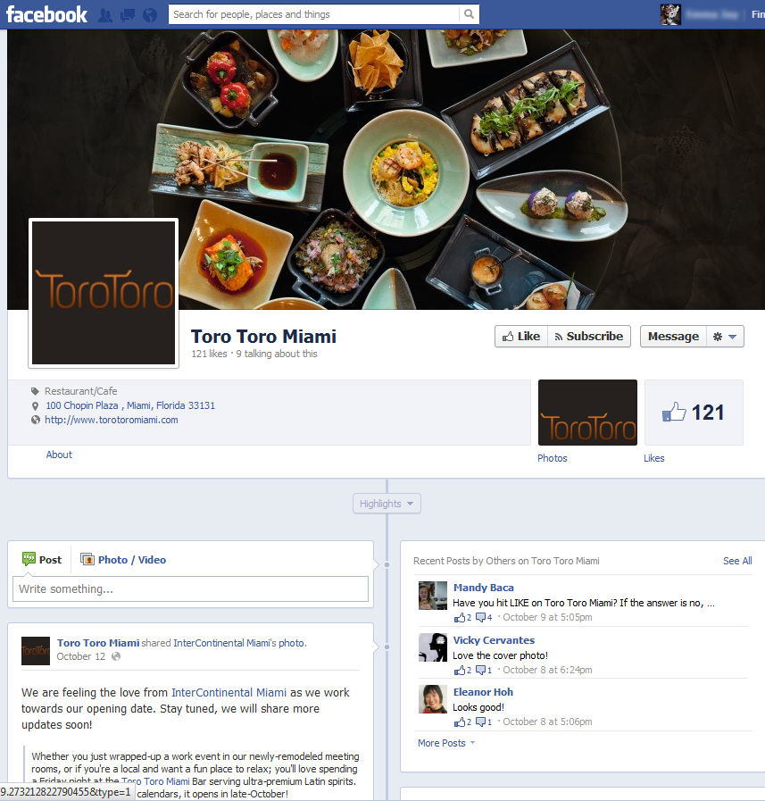 Toro Toro Miami’s new Facebook page